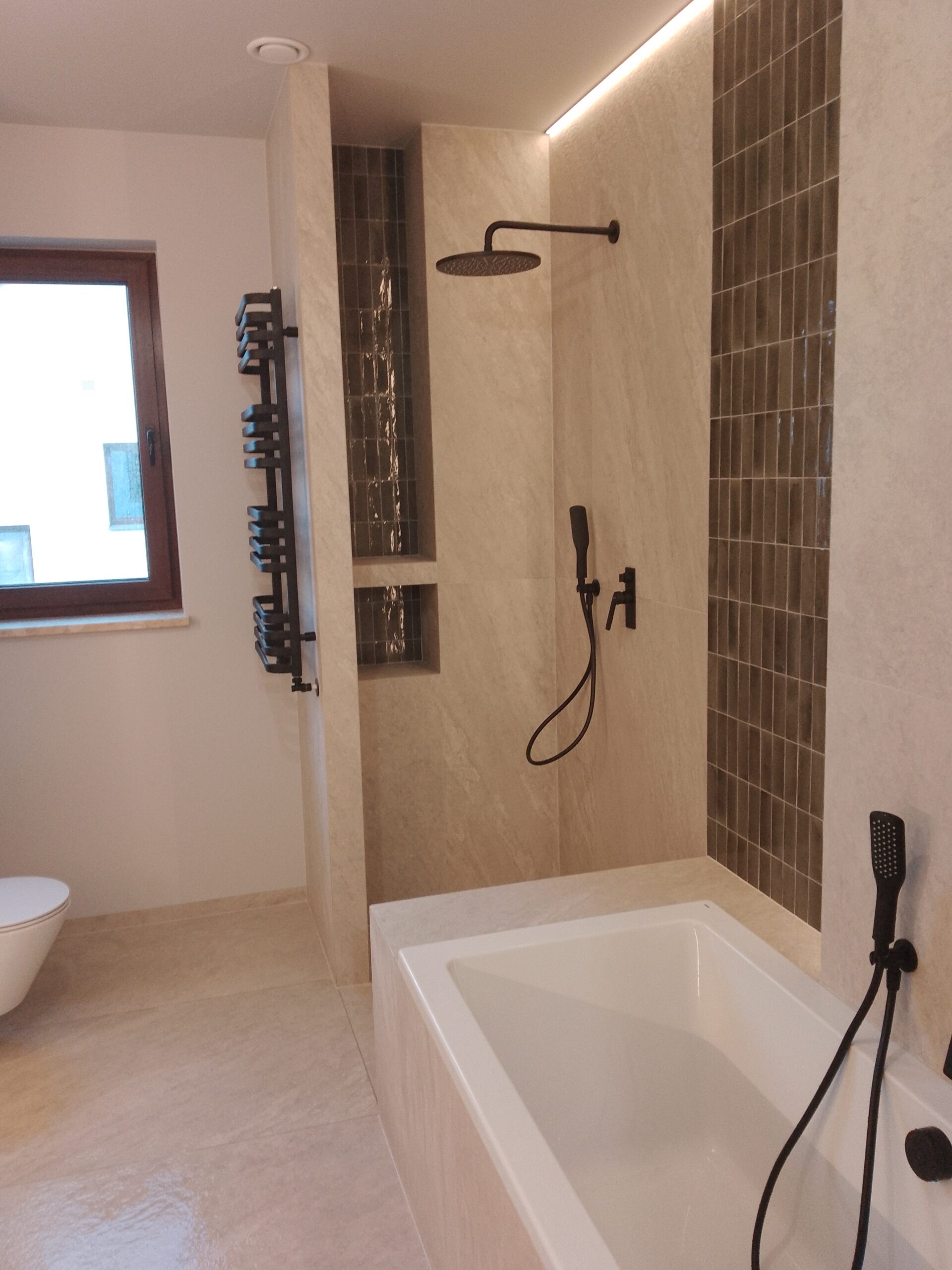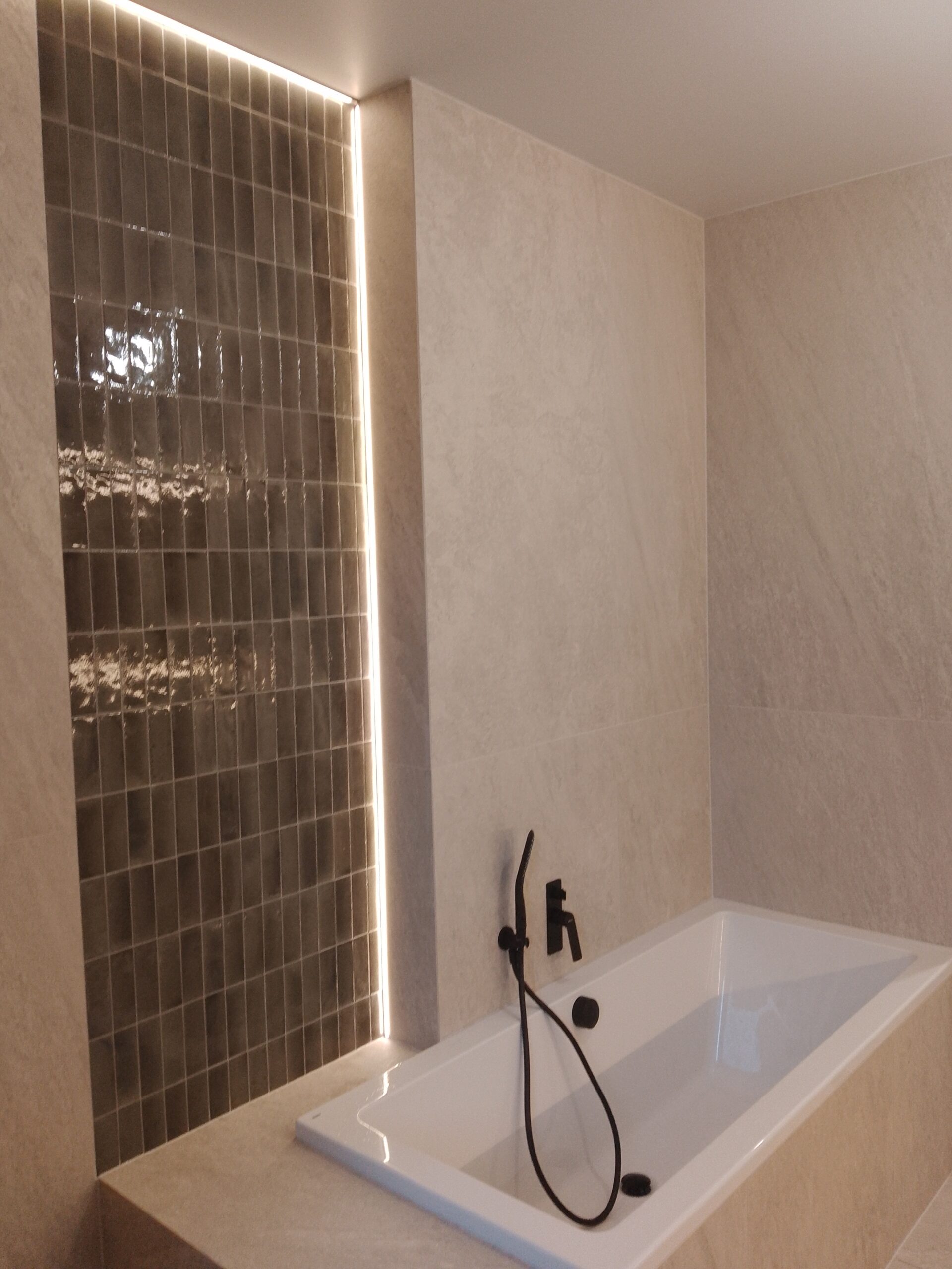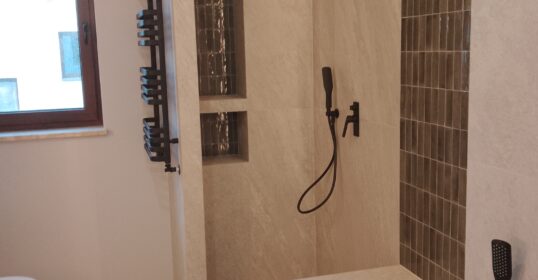 Realizujemy łazienki „pod klucz” – od projektu, przez hydraulikę i elektrykę, po wykończenie. Twoja wymarzona łazienka jest na wyciągnięcie ręki! - Kładzenie płytek